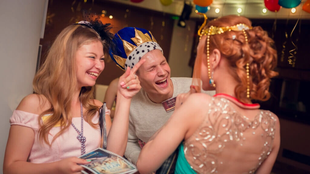 Играйте, не выходя из школы! Ведущий приедет к вам, привезет все необходимое и превратит привычный класс или школьный спортзал в необитаемый остров, ковбойский салун или другую планету. Вам нужно только собрать выпускников, позаботиться об угощении и впустить к себе праздник.